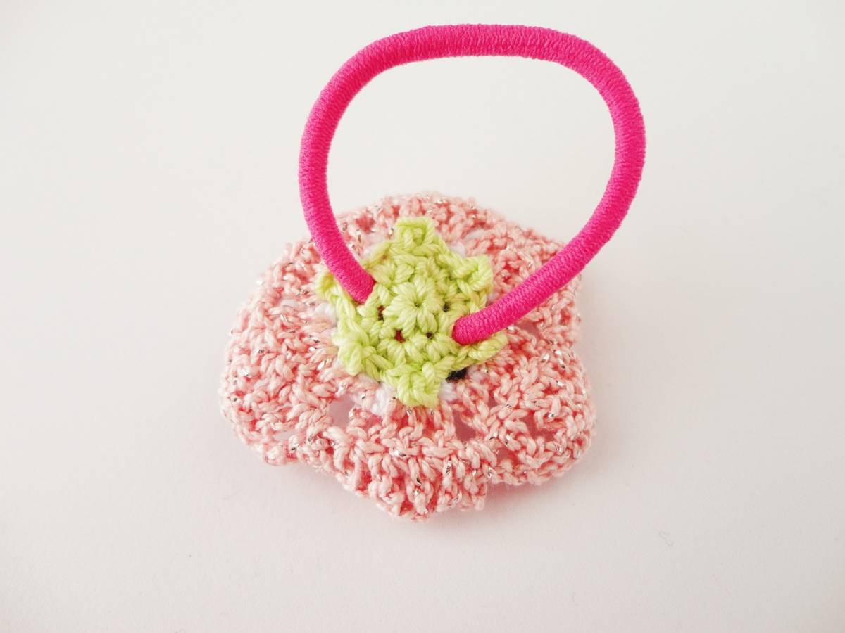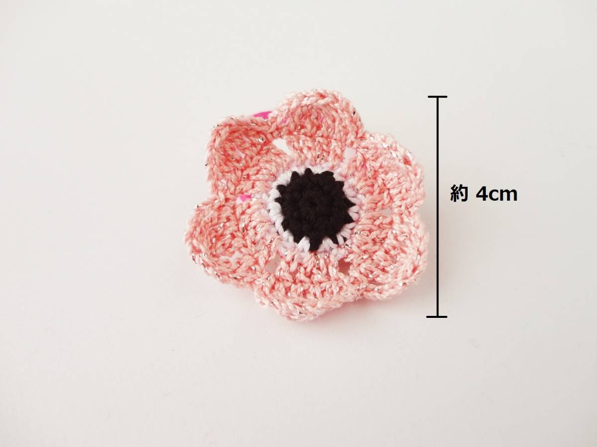 アネモネのヘアゴム*お花*ピンク(ラメ)*ハンドメイド*60