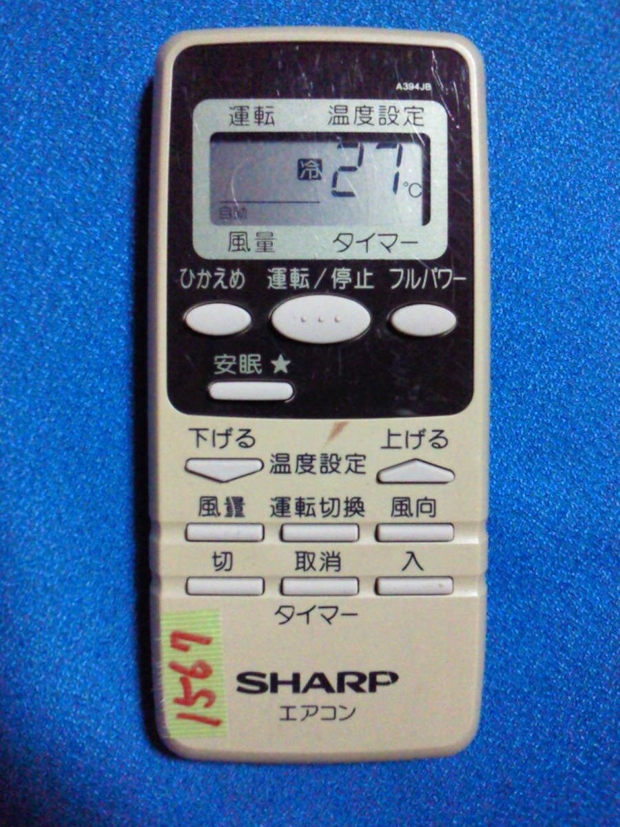 1567★SHARP シャープ エアコンリモコン A394JB■赤外線発光確認済!保証