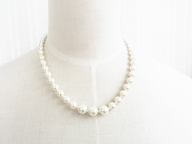 プラスチックパール 大中小のグラデーション 軽量 ショップブランド刻印あり デートやパーティーに素敵 カジュアルも ネックレス△△