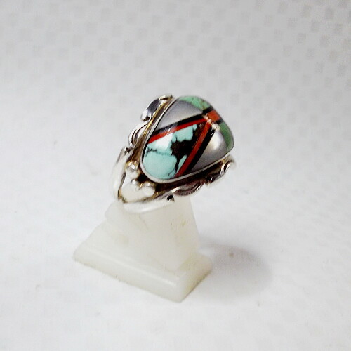 インレイ・ターコイズ!インディアンスタイル・シルバーリング10 |
