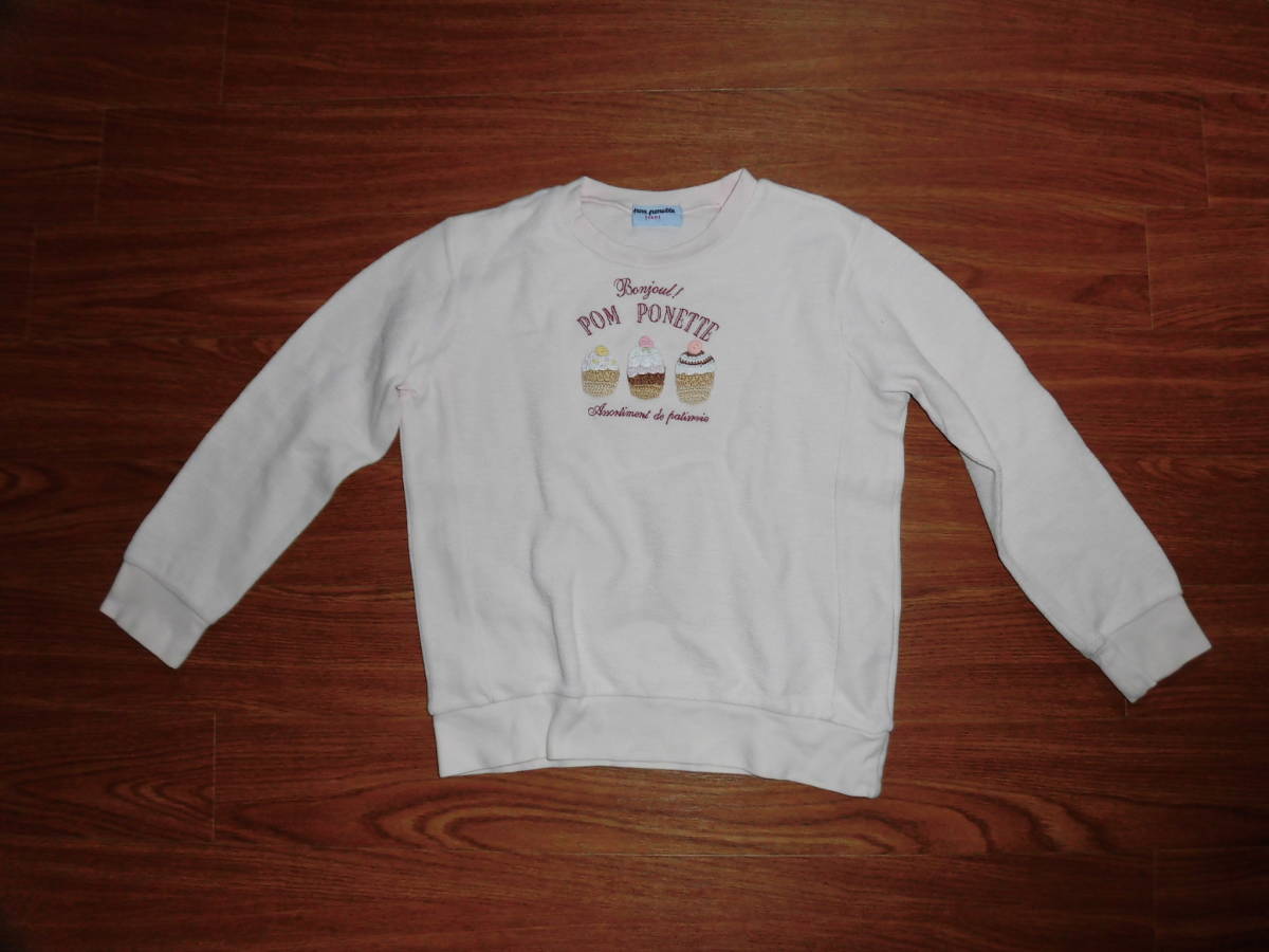 商品説明 ポンポネット★薄ピンク色のカップケーキ刺繍の長袖★130