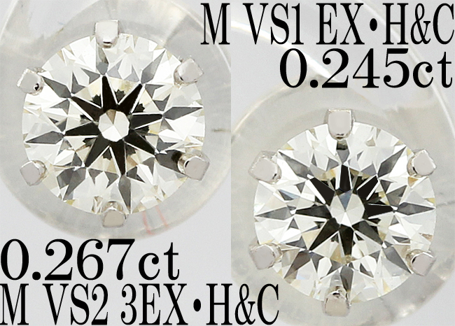 綺麗 上質☆ダイヤ 0.512ct 0.267ct 0.245ct 3EX H&C VS M ピアス Pt900 プラチナ 一粒 0.2ct 0.25ct スタッド♪鑑定書付・送料込 | ||