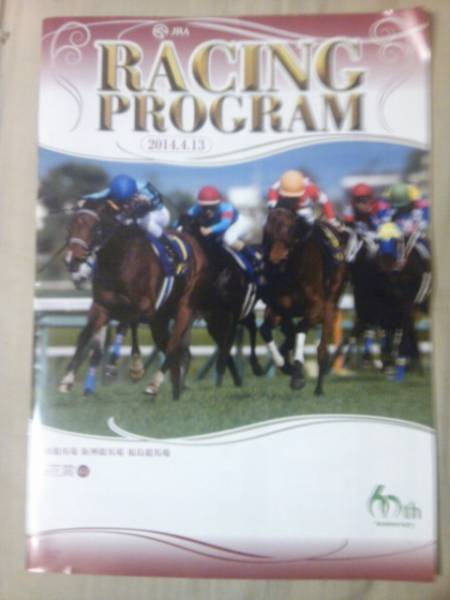 レーシングプログラム2014.4.13 桜花賞G1になります。中山競馬場・阪神競馬場・福島競馬場。です。競馬場でもらいました。ページ数は、28ページです。完璧を求める方、神経質な方の入札お断り×多少のキズや汚れ等でクレームを出す方も×一度は人の手に渡った物としてご理解ご了承くださいませ!安いものなんで、返品は不可でお願いします