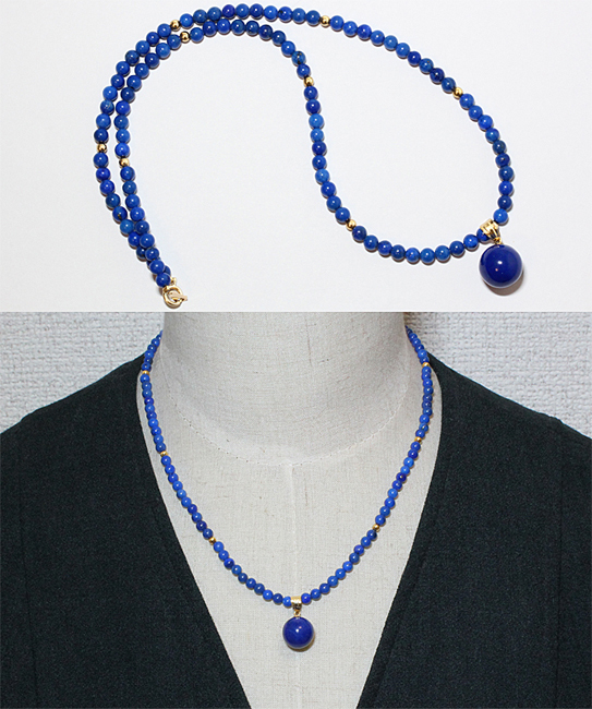 上品☆ラピスラズリ 丸玉 球体 12ミリ 4.2ミリ ペンダント ネックレス K18♪送料込 | ||