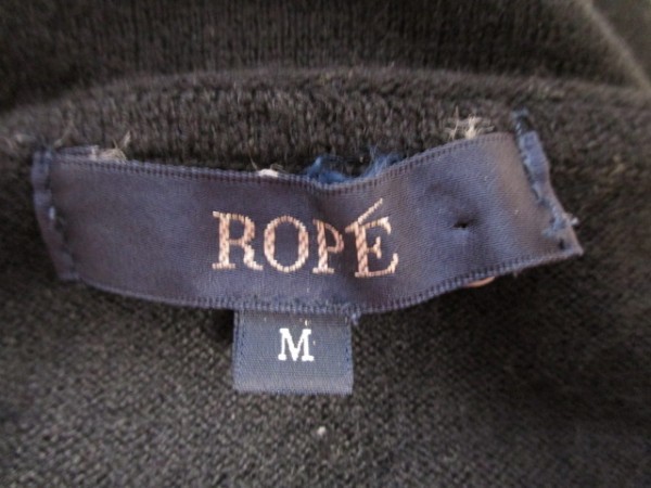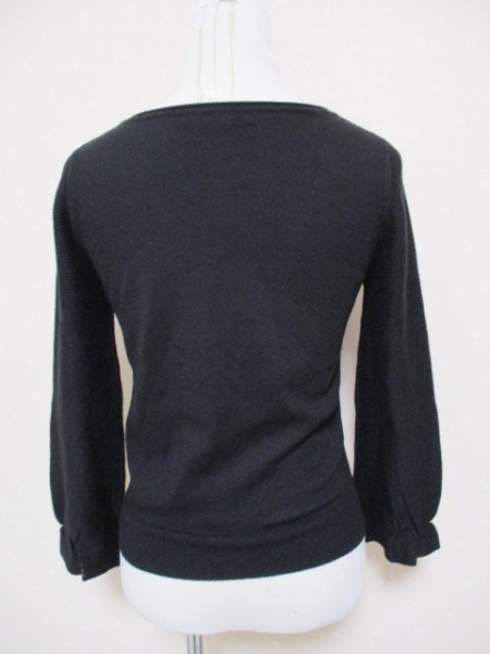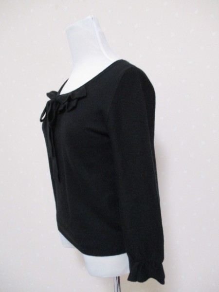 ★ ROPE ★フリルとボウ ラウンドネック ウール混セーター M 黒 (1028)