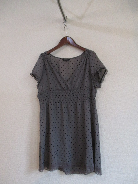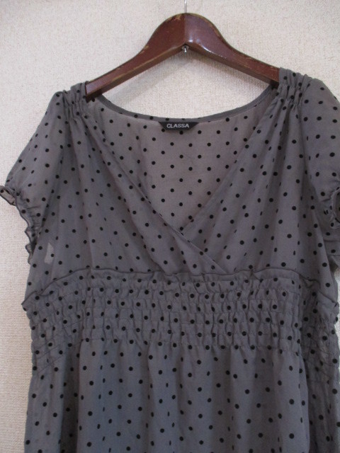 | 商品名 | CLASSA茶×黒ドット柄半袖シフォンチュニック(USED)100518 |