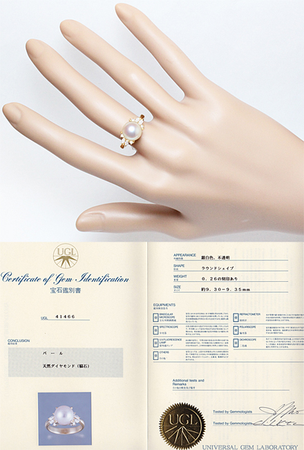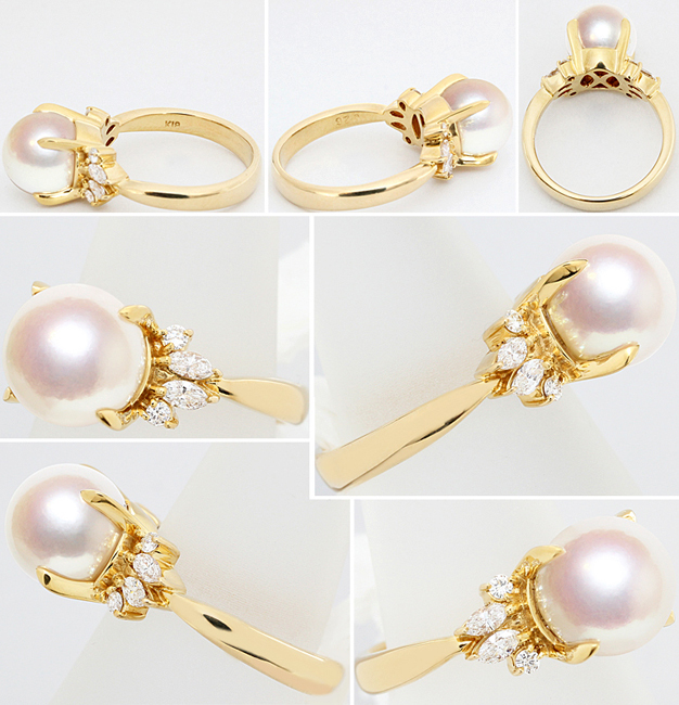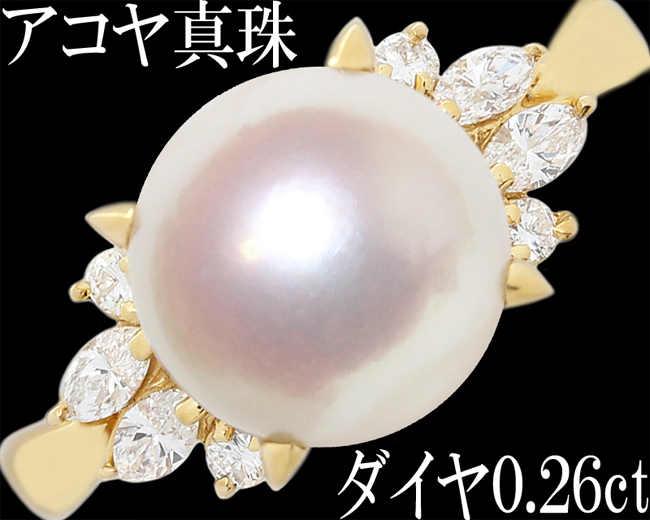 上質 綺麗☆アコヤ 真珠 パール 9.3mm ダイヤ 0.26ct K18 リング 指輪 ピンク 11号♪鑑別付・送料込 | ||