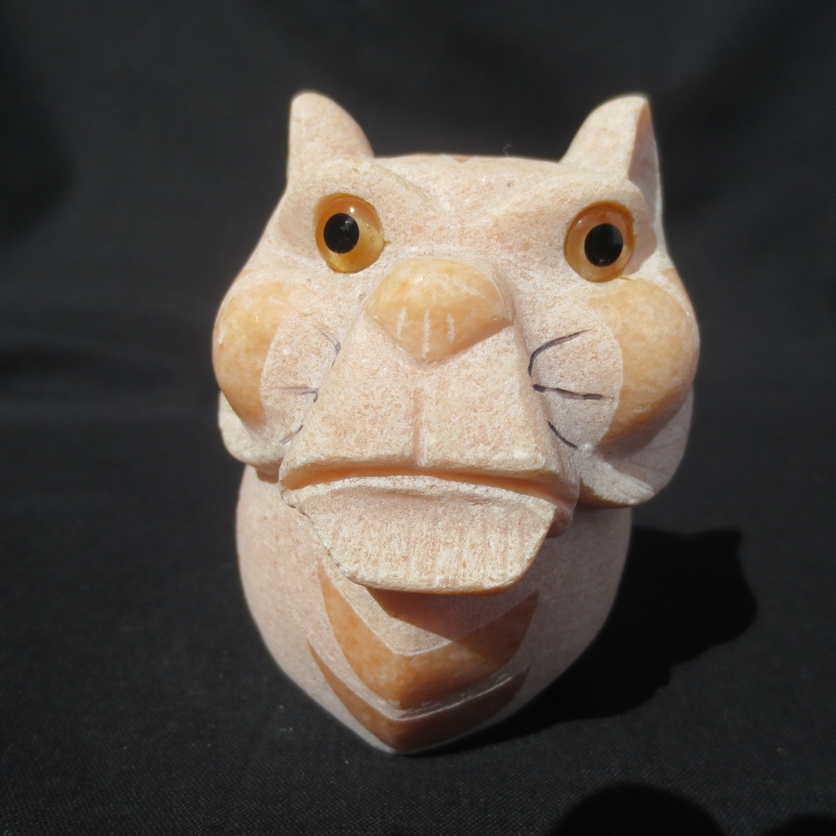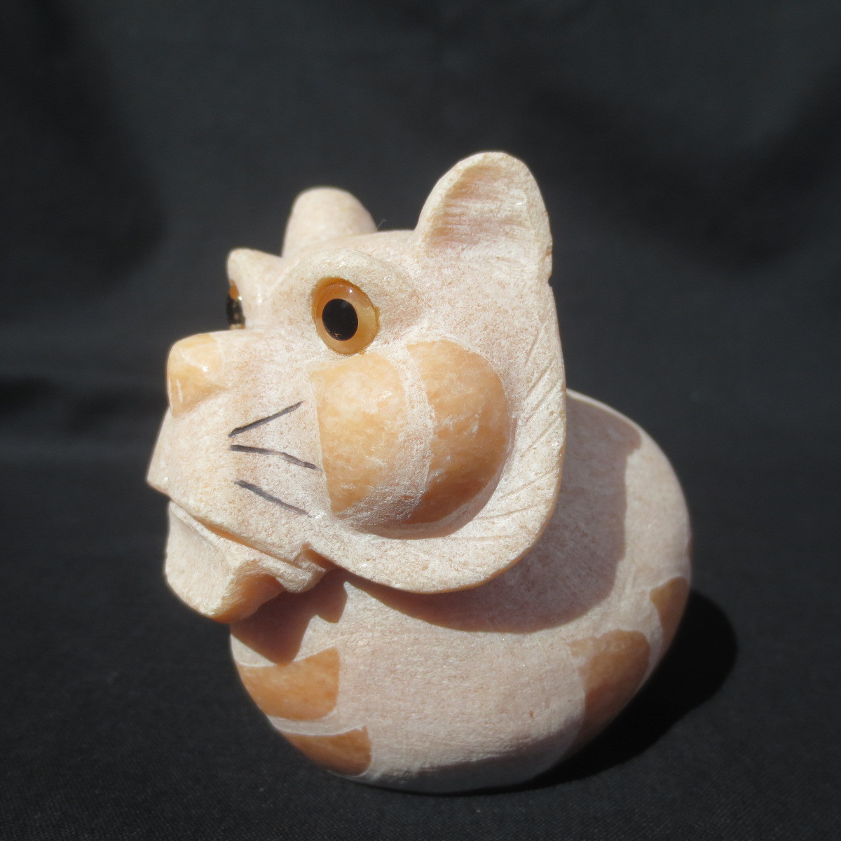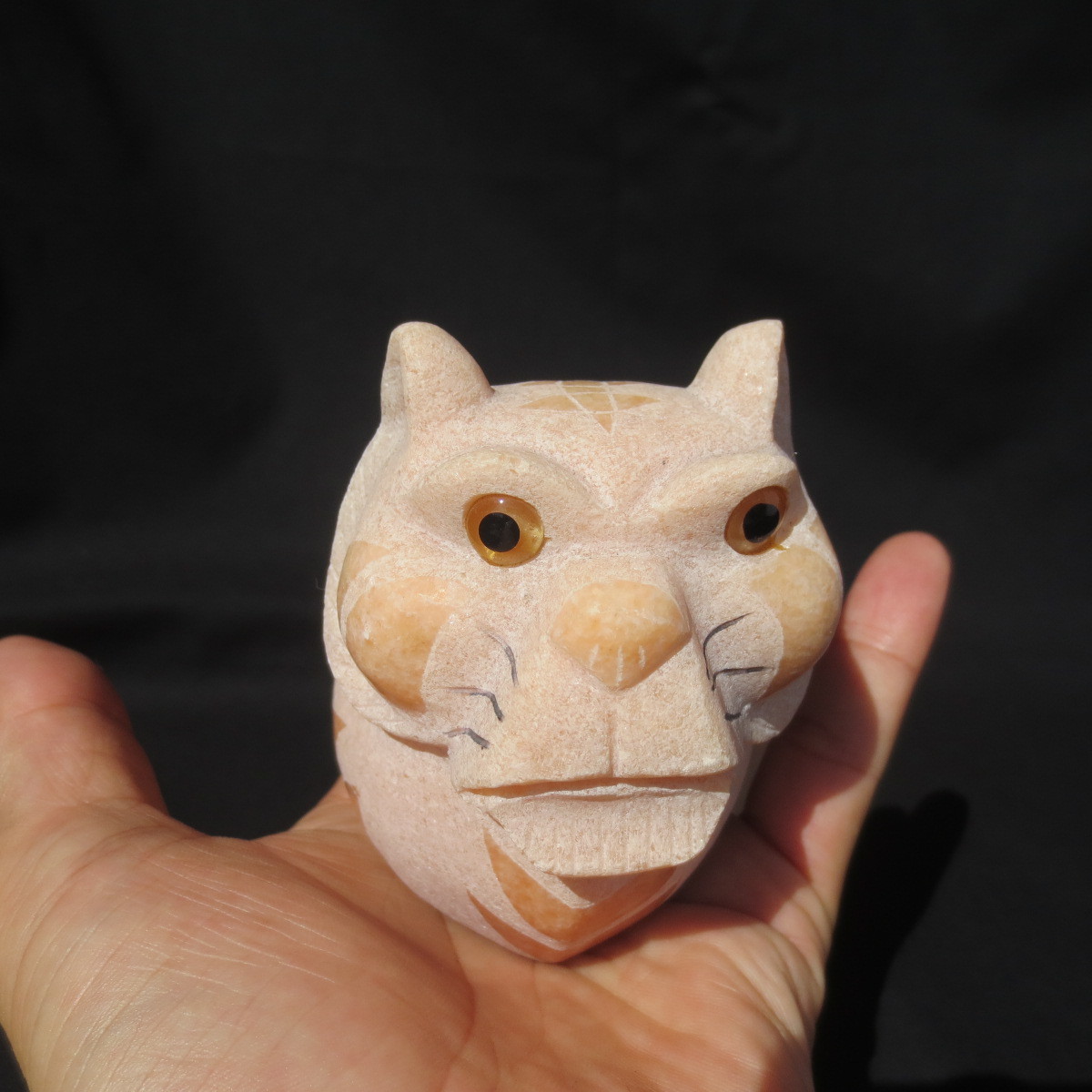 天然のオレンジ大理石の原石から削り出されて形どられた手作りの虎 トラ 寅 です。