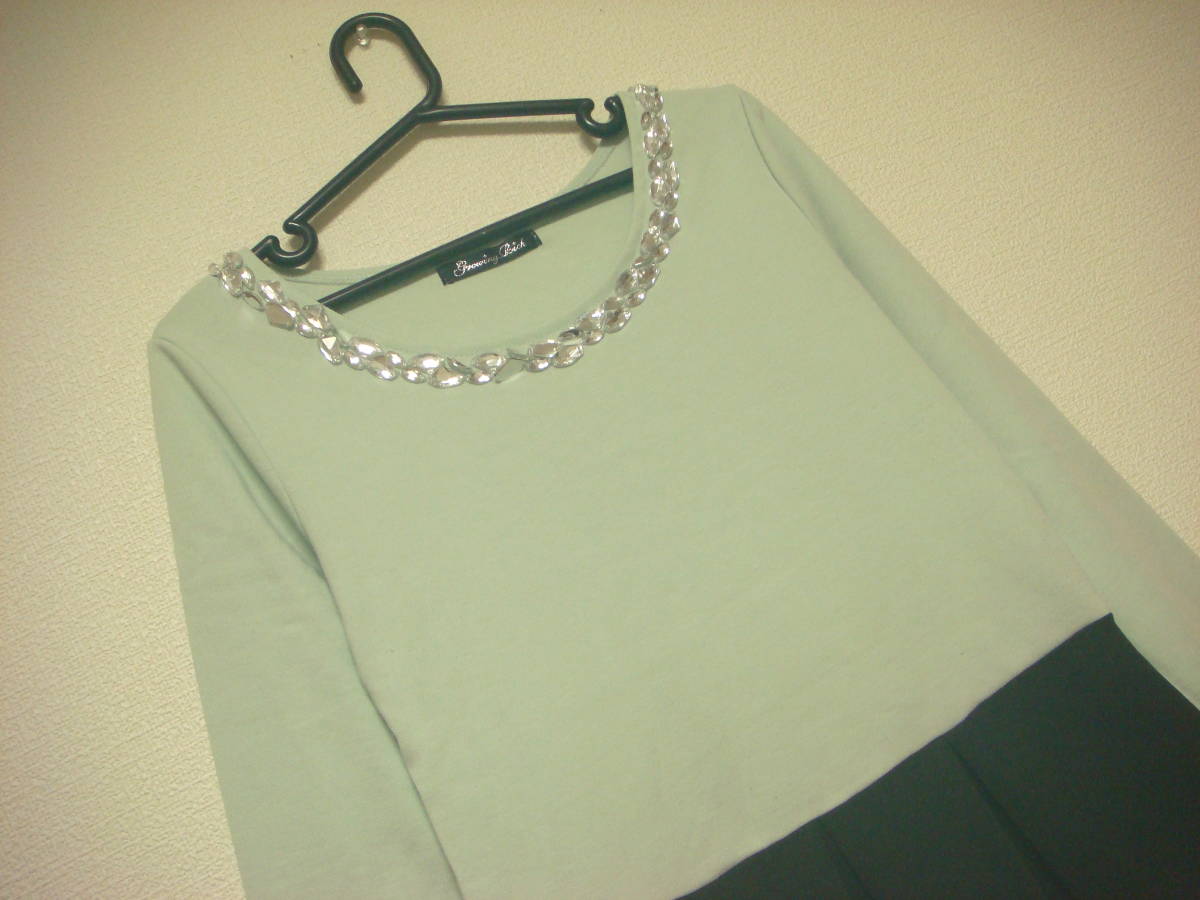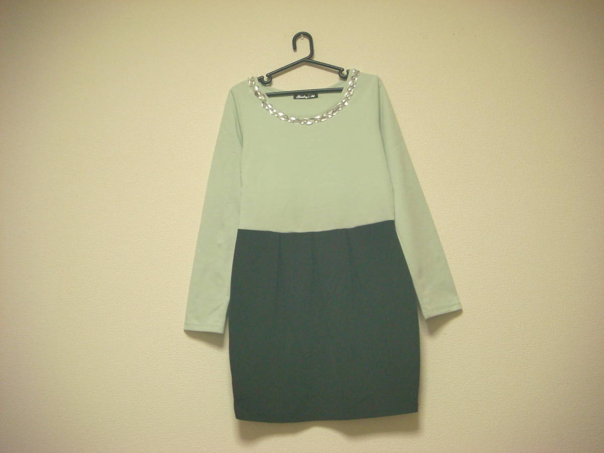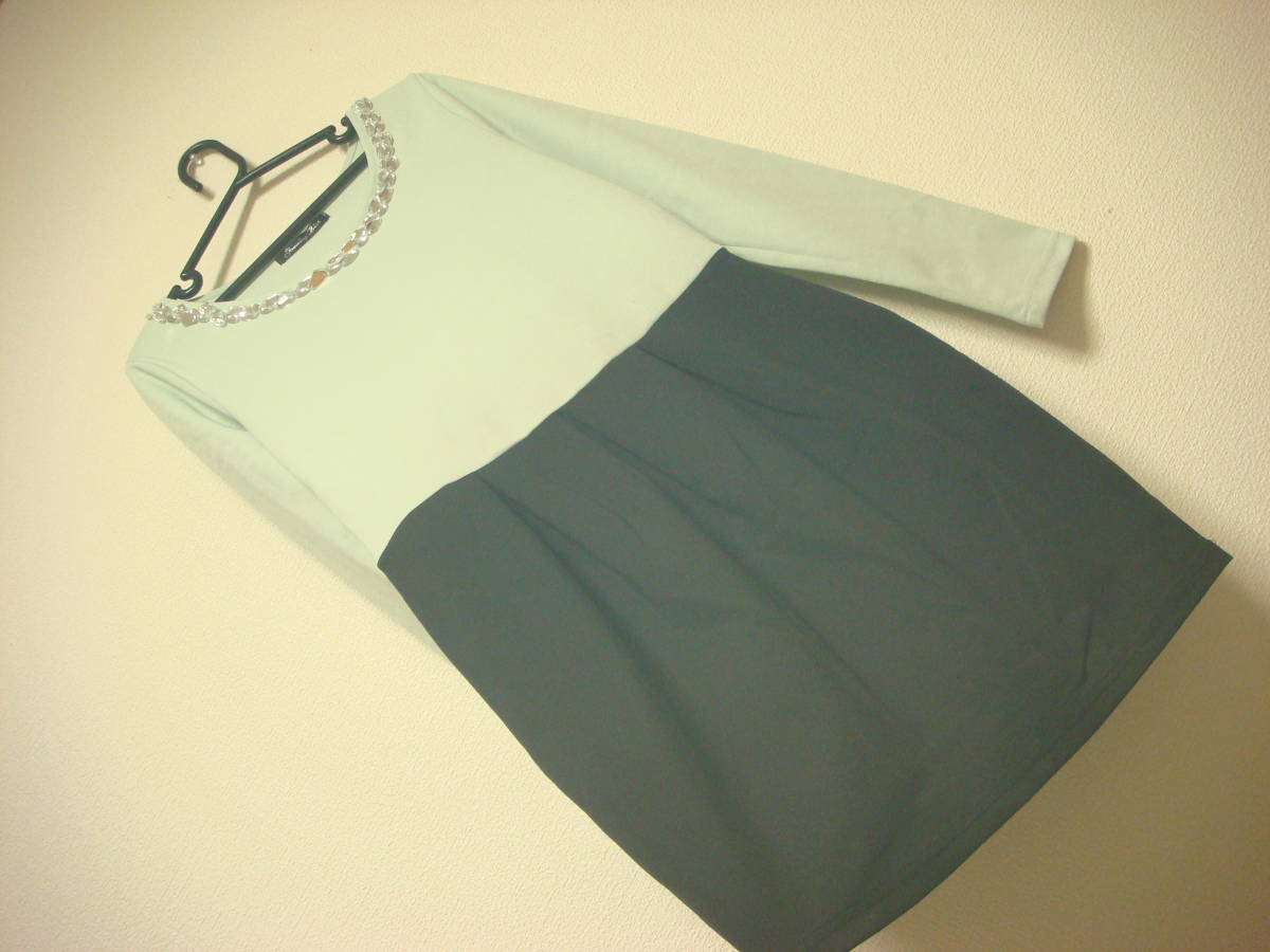 Growing Rich バイカラー ビジュー付き 切替えワンピース ミント×ブラック