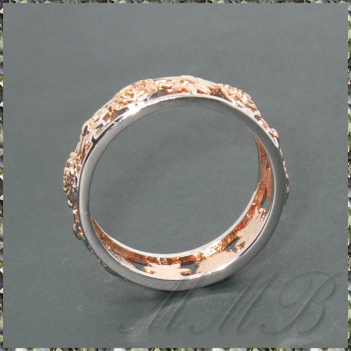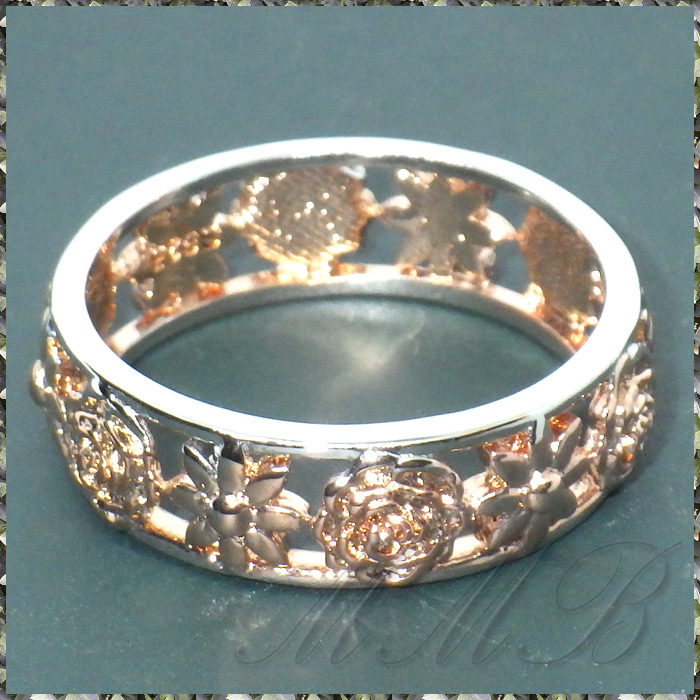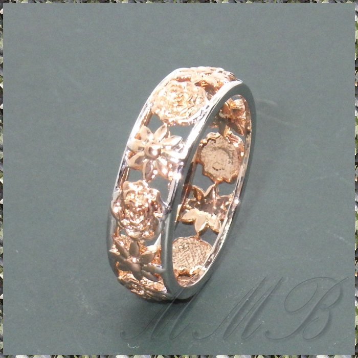Rose & White Gold 2 Kinds Flower Design Hollow Ring ローズ & マーガレット フラワー 透彫 デザイン 6mm リング です。