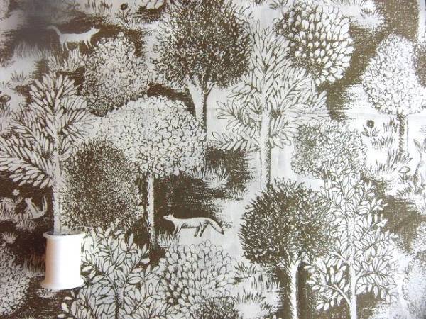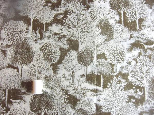 カーキーブラウン★ワンダ-フォレストうさぎキノコのロ-ン生地*アパレル使用 | |||