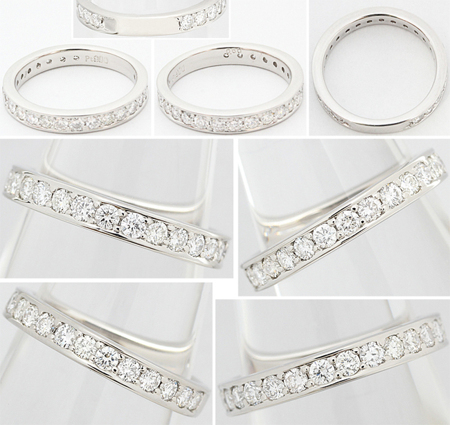 ☆合計0.6カラットの美しいダイヤをセットしたリングです♪ ☆ほぼリング一周にわたってダイヤをセットしたエタニティ・リングとなります♪ 人気の高いエタニティ・リングは、スマートで洗練された雰囲気が魅力的で、カジュアルからフォーマルまで様々な場面で活躍します♪ ☆ダイヤはどれもカッティングの状態が良好で、キラキラとキメ細やかな強い輝きを放ちます♪ ☆内包物は、拡大鏡で確認すると微細なものが確認できますが、肉眼で気になるレベルではなく、綺麗なコンディションです♪ ☆カラーは無色系の質の高いグレードとなっており、お手元を上品に美しく彩ります♪ ☆リング枠は高級素材のPt900(プラチナ)製となり、末永くご使用頂ける確かな品質です♪ ☆リング内側には、カラットと素材を表す「Pt900 0.60」の刻印がございます♪ ☆写真でジュエリーが黒く写っている部分は、カメラの写り込みです♪ |