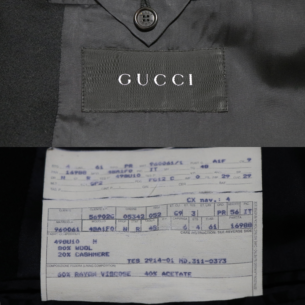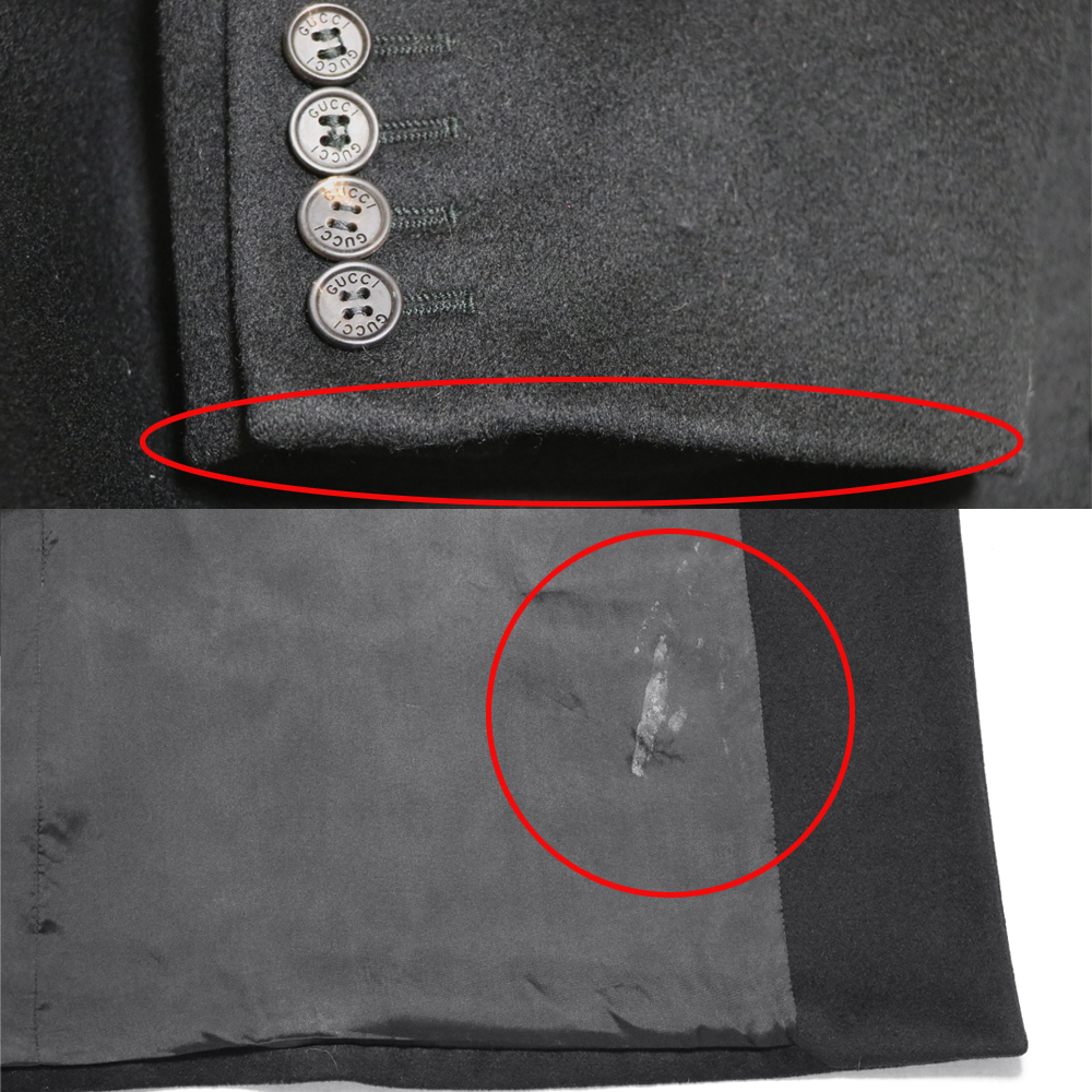 USED訳あり品 GUCCI グッチ トムフォード期 MADE IN ITALY カシミヤ混ウール ノッチ ビックシルエット チェスターコート 黒48サイズです。
