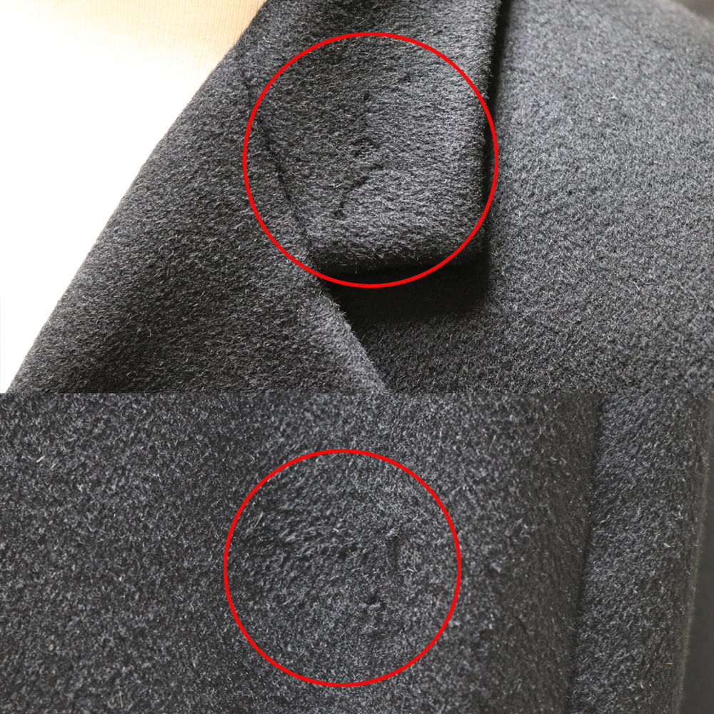 ※【訳ありヶ所】全体に使用感が御座います。お写真にもあります通り、左襟、左袖肘にキズ、袖口などにスレ、左裏地裾部分に汚れ、前身頃に皺がございます。(お写真をご参照ください)