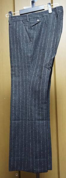 商品詳細 ■ハンドステッチ風の味のあるストライプのフラノ生地、このブランドらしく細部まで凝ったディティールになっています。シルエットもきれいです。 ■ブランド説明■ フランス、パリ在住のデザイナー松下貴宏氏が手掛ける、 パリ発ドメスティックブランド。 フランス在住の為、フランスのヴィンテージ・ファブリックや、水牛ボタンなど、自ら旅の道すがらで探し求め、 こだわり抜いた海外産の素材を日本に持ち帰り、製作は松下氏自身が指揮し、手掛ける。 テーラーやパタンナーを経験し、を経て、2007年春夏シーズンよりにブランド名を変え展開。 2つボタンでありながら、下一つ掛けを前提とするジャケットや、 肩甲骨のカッティング、ウエストのシェイプなど、着用してみて初めて体感できる驚異的に計算されたパターンワークが特徴。 本物を見極める眼力を持ち、遊びを知り尽くした大人が、さりげなく着こなして頂きたい稀有なブランドです。 ■色:グレー ■素材%;毛100 ■サイズ表記:40 実寸:cm ジャケット 肩幅;41 身幅;50.5 着丈:69.5 袖丈;63 パンツ ウエスト:85 股上:27 股下:73 (4cmほどだせます) 太腿幅:31 裾幅:25 ■生産国;日本 ■状態;usedですが特に記載するダメージありません。 |