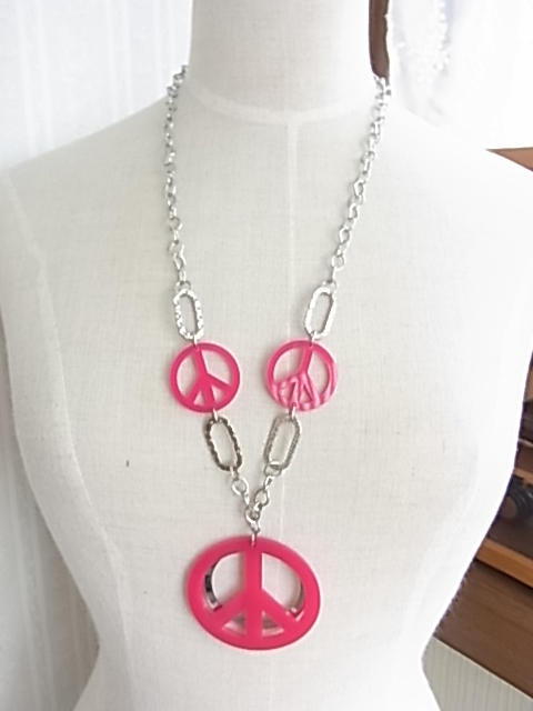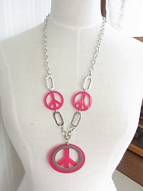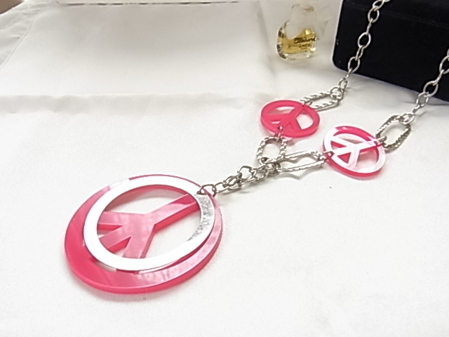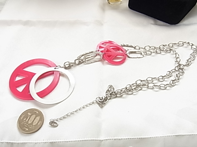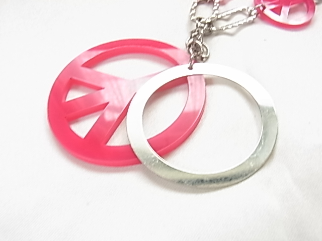 cloirles刻印 ショッキングピンクとシルバーカラーのコンビデザイン 軽量 ロングネックレス☆☆
