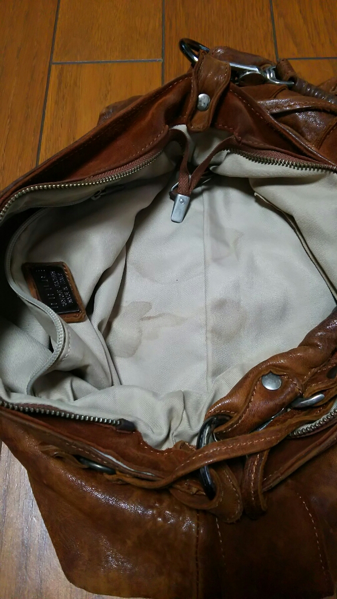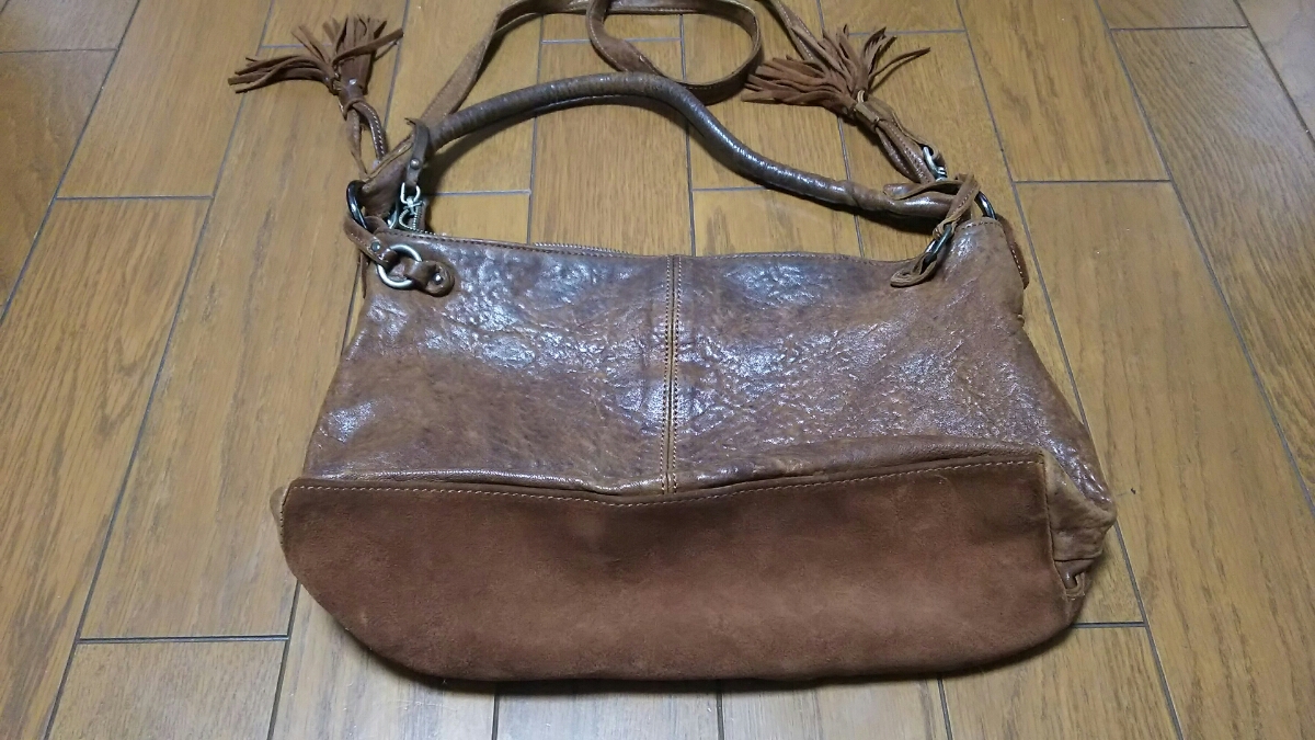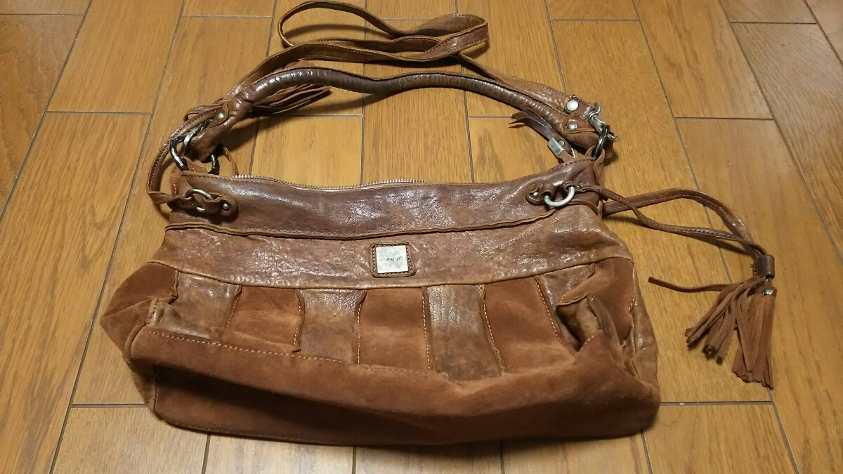 イヌエのショルダーバック 革製 革製 サイズ25cmx35cmx10cm 中古品で汚れ、傷、い色褪せ等使用感あります