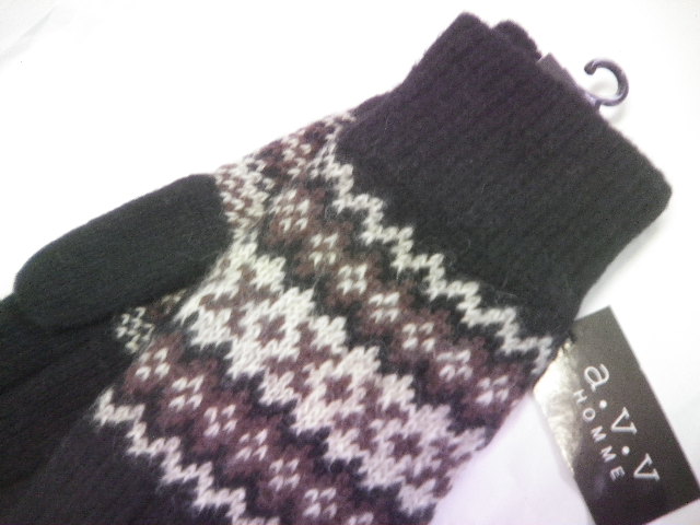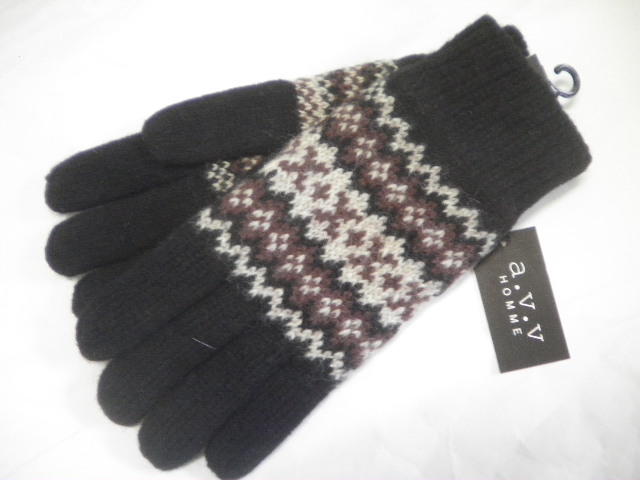 商品 情報 | ☆新品 ☆ロゴマーク付きです!!(モニター環境により色が写真と少し異なる場合があります) ☆カラー ブラック系ベースにダークブラウン系の柄 ☆素材 ウール・ナイロン made in china ☆平置きサイズ *手首~中指の先 約 26cm *手首の幅 約 8~9cm ※参考程度に (測る場所により多少の誤差が生じます) ☆ブランド a.v.v アー・ヴェ・ヴェ(正規ライセンス商品) |