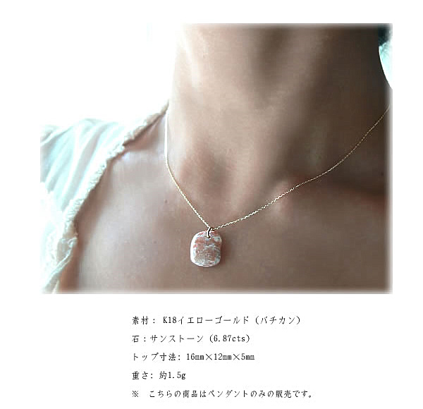ナチュラル感たっぷりなサンストーン原石ペンダント。