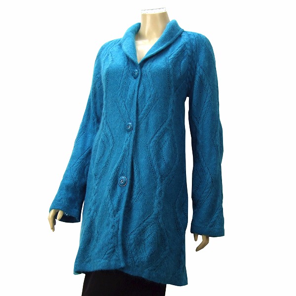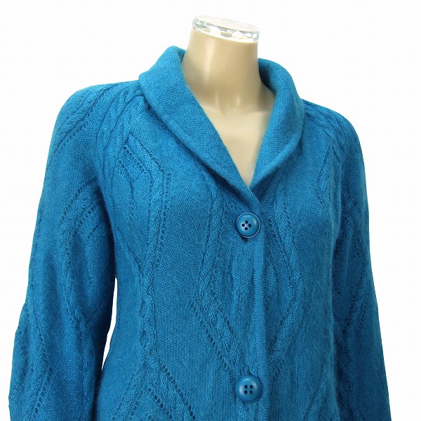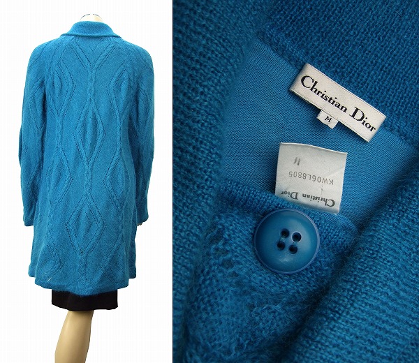 CO)美品*クリスチャンディオール christianDior★羨望マリンブルー系×極柔ふんわり艶毛★優雅ニットコート★Mサイズ(9号 38)透かし柄入り