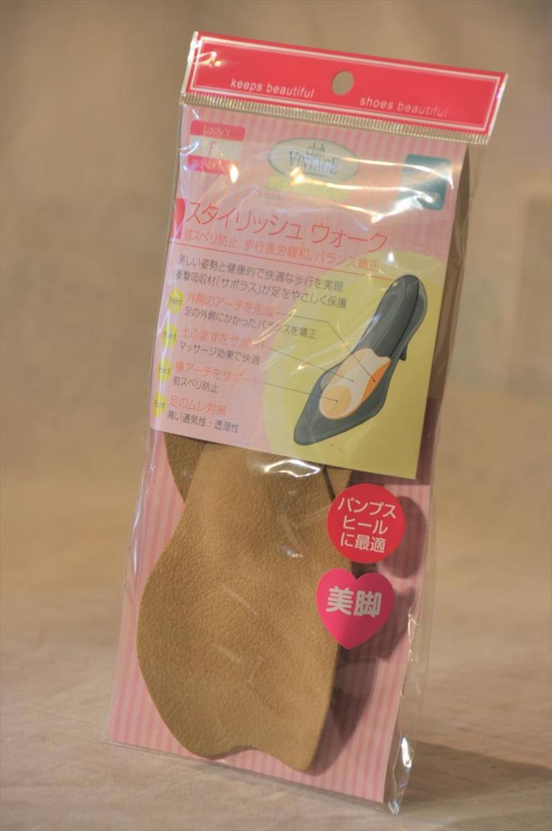 スタイリッシュウォーク ベージュ色 女性用インソール 前滑り防止、歩行疲労緩和、バランス矯正 アーチ形成 送料無料