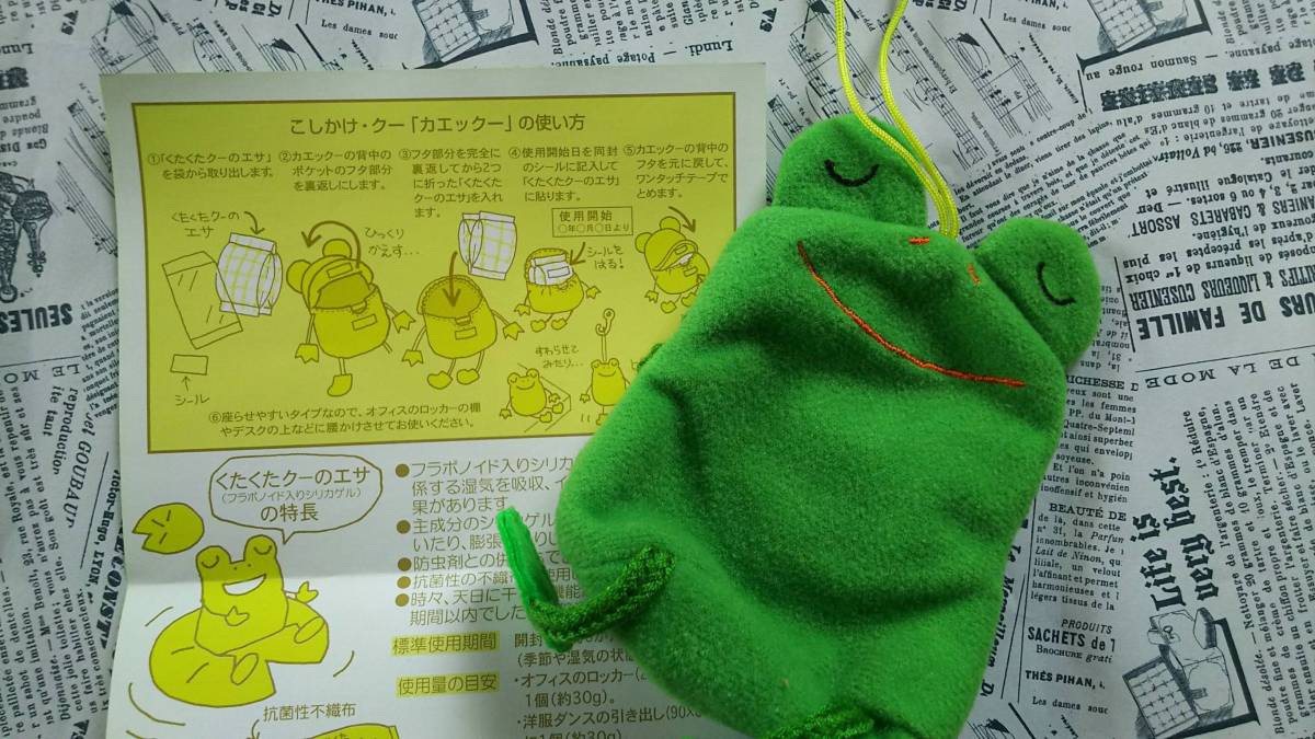 【千趣会 かわいい除湿剤 クタクタクー『こしかけカエル』 と シリカゲル 2点セット】なつかしい 未使用 シリカゲル未開封