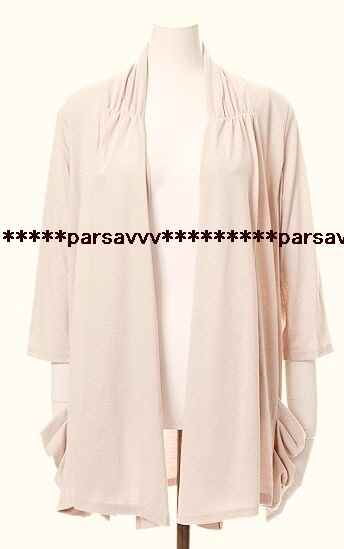 着流しのフロントレイヤーのシルエットとバックにほどこされたレースの透け感が大人の余裕を感じさせるカーデですね♪