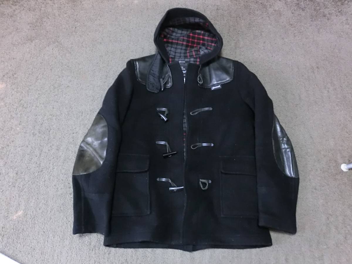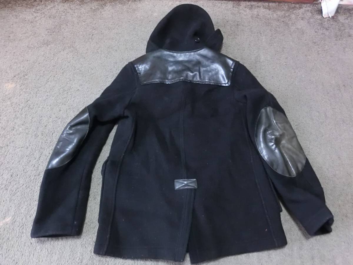 数回着用 美品の ジュンヤワタナベ別注 グローバーオールダッフルコートです。Sサイズ、黒、ウール60、ポリエステル20、ナイロン15、その他5%、牛革パッチです。実寸は、肩幅44、身幅53、着丈72、脇下袖丈47CMです。ネットでも見かけないレアモデルです!!探していた方、この機会にいかがですか?