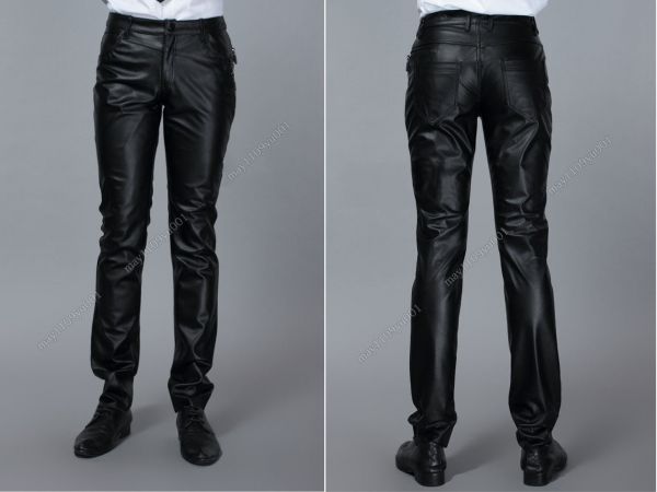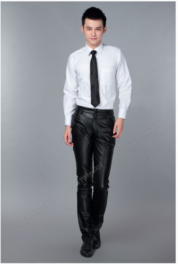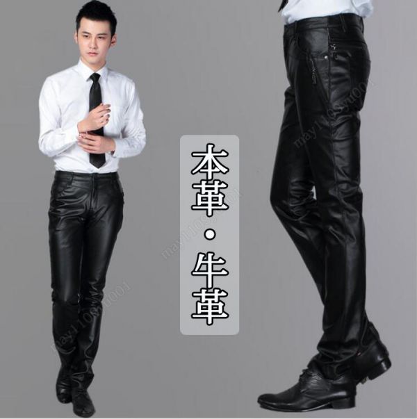 新品!牛革 皮パン 本革 レザーパンツ  ライダースパンツ  メンズ スキニー  ボトムス  ストレート  シルエット  バイク 黒 XL