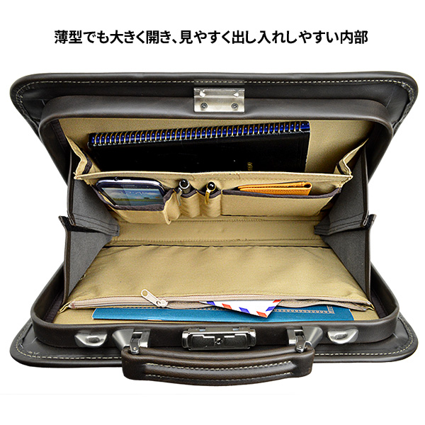 | 軽くて発色が美しいナイロン製ダレスバッグ。 すっきりとした薄マチデザイン。 大きく開いて中が見やすい大開き仕様 ワンタッチ開閉の錠前付きで出し入れも楽にできます。 -INFORMATION- サイズ横幅37×高さ28×厚み3.5センチ 素材ナイロン (付属:合皮) カラー01-黒、05-ベージュ、17-オレンジ 重量約990g(ショルダーベルト含まず) 本体正面ファスナーポケット 本体内部ファスナーポケット付きアテポケット、ササマチポケット、 アテポケット、片ササマチポケット、ペン差し その他肩アテ付きショルダーベルト付属、A4サイズ収納可能 生産地日本(兵庫県豊岡市にて生産) ※ 予告なく仕様変更する事がありますのでご了承下さい。 | |