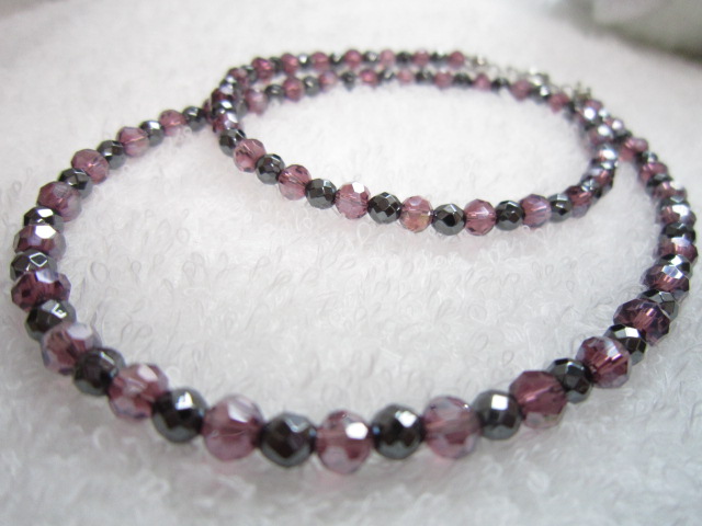 ☆ヘマタイト石とガラスビーズ玉を組み合わせたお洒落なネックレス☆ | |||