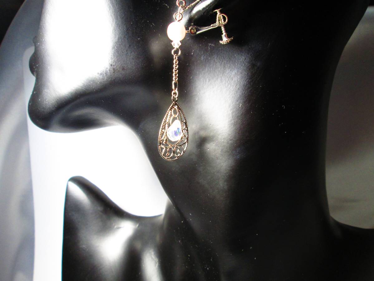 ★商品内容★ ★水滴透かしパーツシルバーとクリスタル雫ビーズのハンドメイドイヤリング★クリスタル・コクーンパール・シルーバー・上品・スワロフスキー ゴージャスなシルバーの透かしパーツと クリスタルガラスの雫ビーズ・コットンパールの 上品で落ち着きのある雰囲気のイヤリングです。・**。☆・**・**。 ふんわりとした優しい色合いが、 上品な大人の女性らしさを印象付けます。・**。☆・**・**。 普段使いはもちろん お洒落のワンポイントにも重宝しそうです。・**。☆・**・**。 【素材】 透かしパーツ水滴シルバー25x15mm コクーンパールピンク6mm スワロフスキー5328クリスタル(オーストリア製)3mm ドロップビーズクリスタル10mm チェーンシルバー カンより垂れ下がる長さは、約5.5㎝です。 Eー272 ★商品状態★ ・画像と実物の色味が多少異なる場合があります。 ・緩衝材(プチプチ等)を使用し、防水梱包でお届け致します。 ★注意事項★ ***~ご購入前に必ずお読み下さい~*** ***商品について*** *一点一点心を込めて作っておりますが、手作りなため多少の歪み等あるかもしれません。 手作りの味わいと、世界で一つだけの作品とお考えいただければ幸いです。 *デリケートな商品ですので、強く引っ張ったりすると破損する事もあります。 お取り扱いにはご注意ください。 *写真も完璧な色合いの表現にはなっていない場合もあります。 *基本イヤリング金具は跳ね上げ式ネジ付きを使って作成しています。 ご希望によりピアスへの変更も承っております。【フックピアスへの変更(無料)】【キャッチピアスへの変更(別途追加料金 120円が必要です。)】 ~ご注文の際にメッセージ欄よりご連絡ください~ 尚、金具変更のご希望が無い場合は、掲載された写真のままの金具にてお送り致します *金属アレルギーや化学物質アレルギーなどへの対応はしておりませんので、ご心配な方はご遠慮下さいますようお願い致します。 *永くご愛用頂くために、ご使用後は柔らかい布等で軽く拭いてください。 ***ご質問について*** *ご購入前にお願い致します。 日中は仕事をしておりますので、ご返事が直ぐに出来ない場合がございます。 出来る限り早い対応を心がけますが、ご了承ください。 また、発送までには、お振込み確認後、翌日の発送を心がけておりますが、仕事の都合により2~3日程かかる場合がございます。(その際にはナビにてご連絡いたします) お急ぎの場合は、極力対応いたしますが、場合によっては対応致しかねる事もあります。ご了承下さいませ。 落札後4日以内にお手続き、ご連絡が無い場合は落札者都合で削除致します。 発送日指定・ご入金の予定が1週間以上先をお考えの方は、入札の前に質問よりご連絡くださいませ。 予めご了承の上、ノークレーム・ノーリターンでお願い致します。 | |||