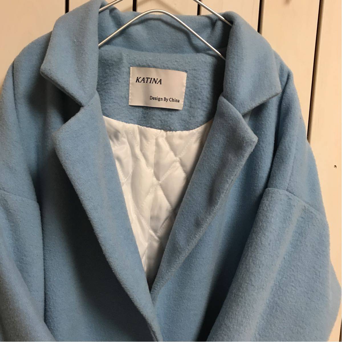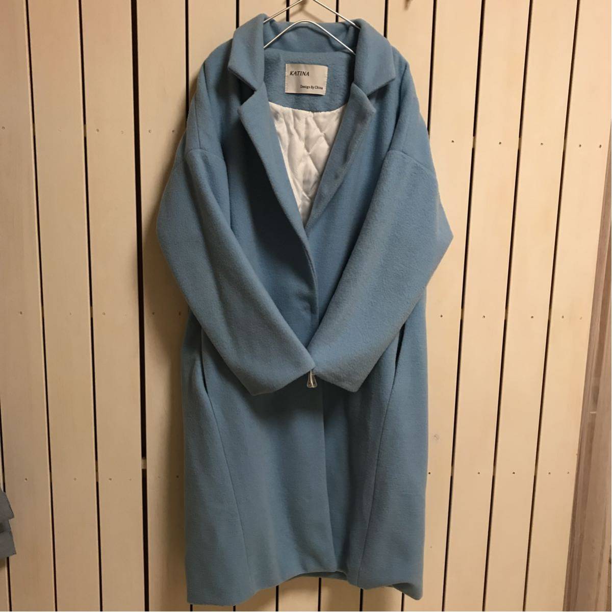 ★1回着★オーバーサイズのチェスターコート 水色(パステルカラー) F