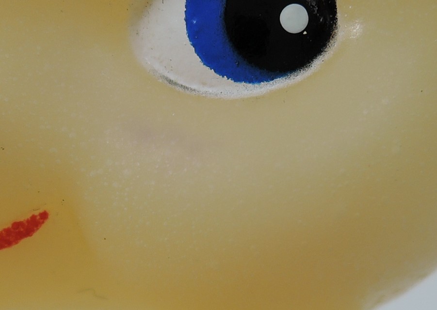 ●小さい汚れが3カ所(左目下、右ほっぺた、後頭部)有ります。小さい擦り傷有りますが、割と綺麗です。
