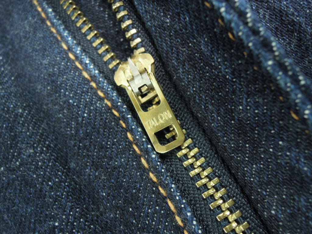 ・フロントジッパーフライ・サイドシーム赤耳・紙パッチ・隠しリベット