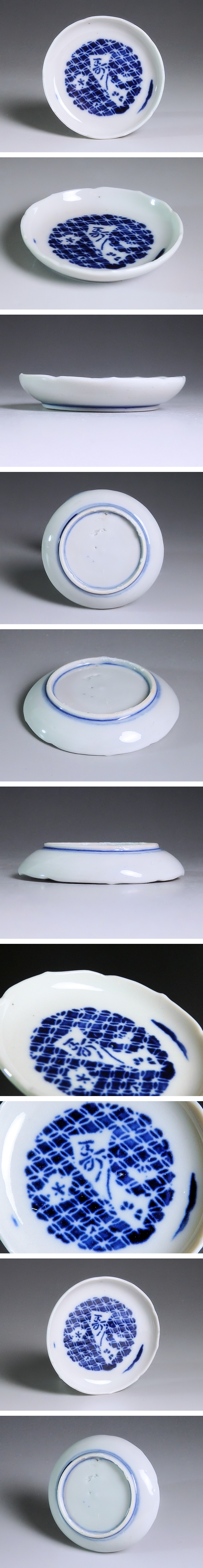★華心★ AMx-C041 古伊万里 染付 印判 七宝紋に短冊の図 豆皿