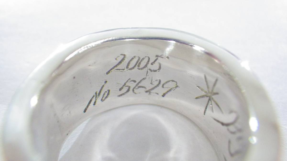 その証しとして、リング裏側には溶接跡が存在し、その上に手彫りのロットナンバーと製造された年号が彫り込まれております。