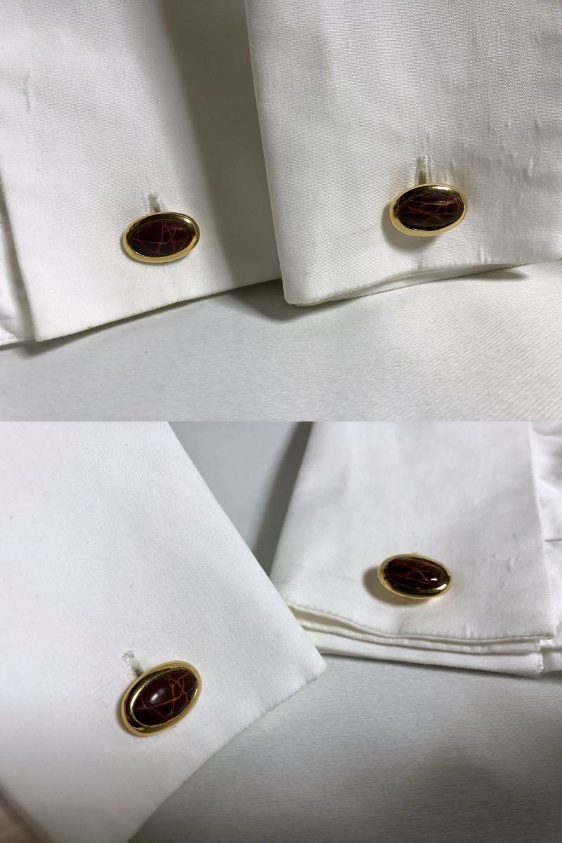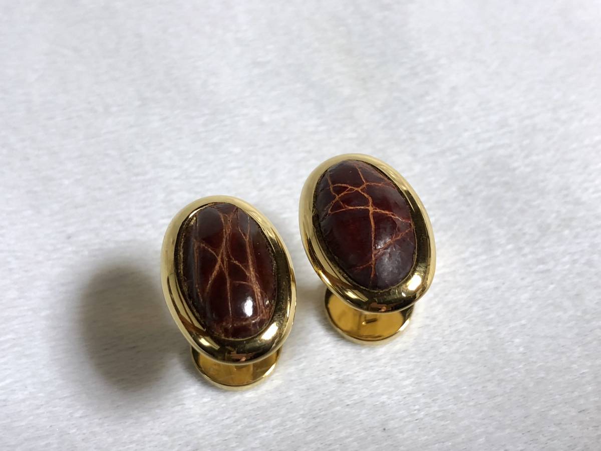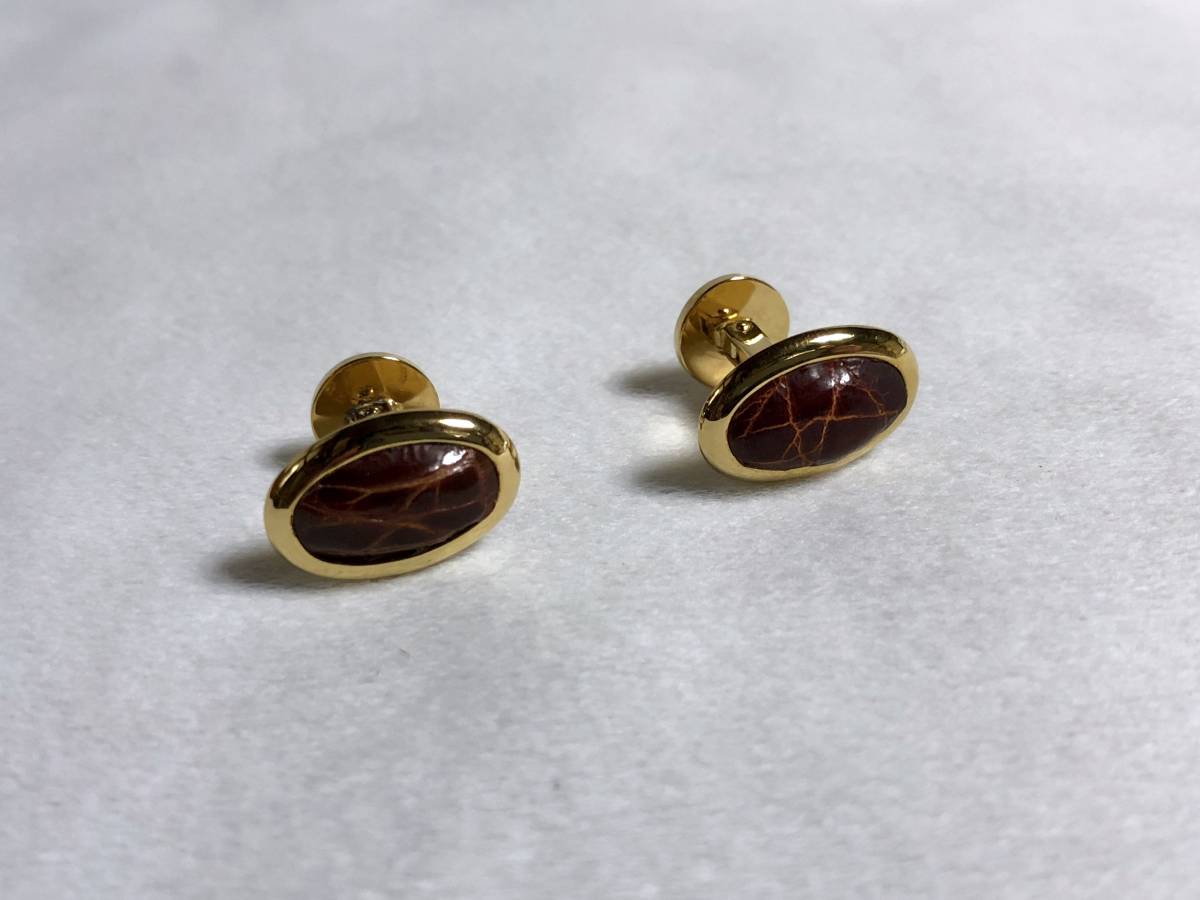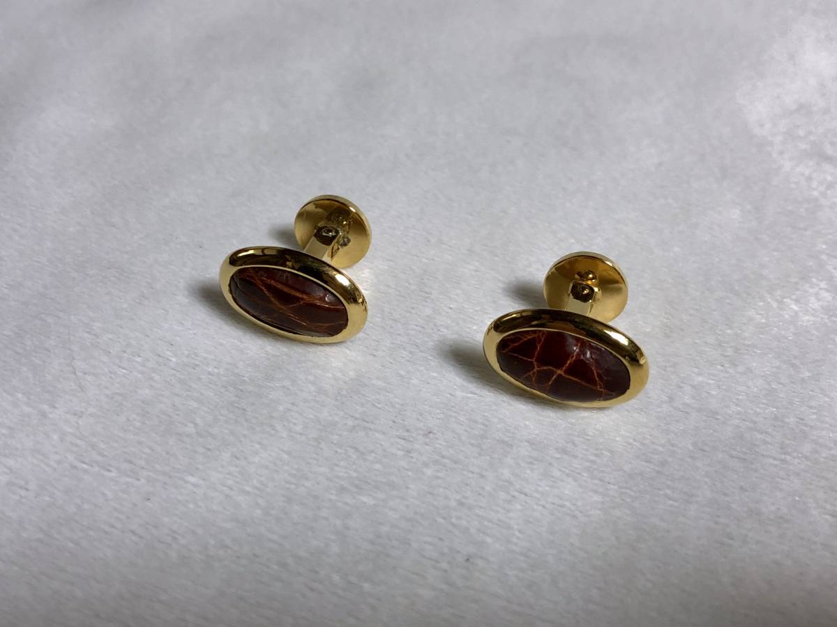 正規良品 激レア ロエベLOEWE アマソナ アナグラム レザー装飾オーバルカフス茶 ゴールド×ブラウン カフリンクス ヴィンテージ立体ボタン