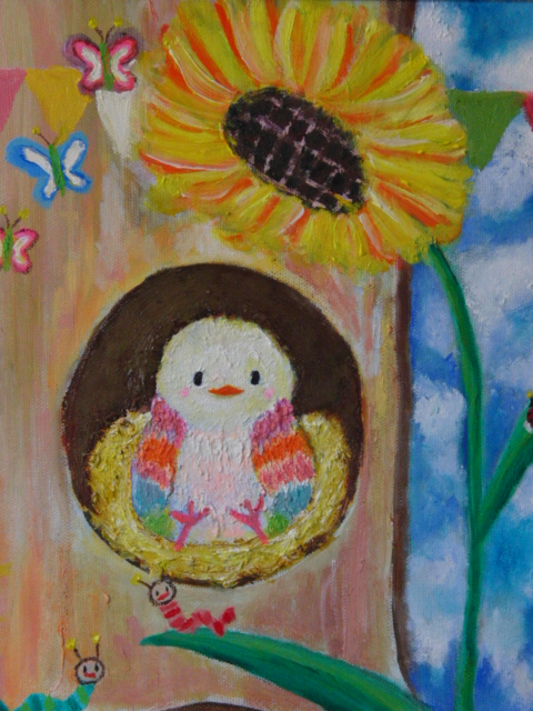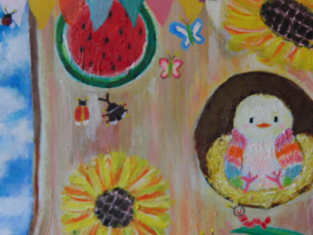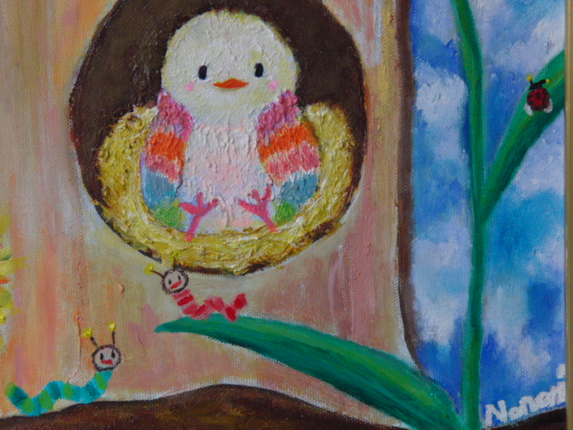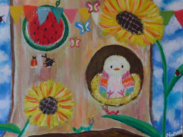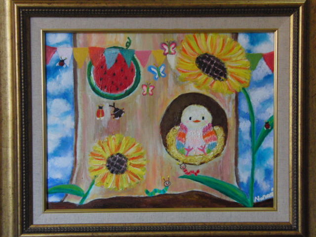 ≪国美協≫NANAMI・奈菜美、『夏の小鳥』、油彩画、F6号:40,9cm×31,8cm、一点物、新品高級油彩額付、直筆サイン・真作保証付