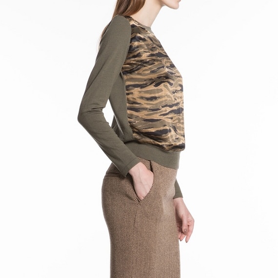 ・素材:前身頃: 100% 絹,後身頃: 袖部分: 82% 毛,18% ナイロン