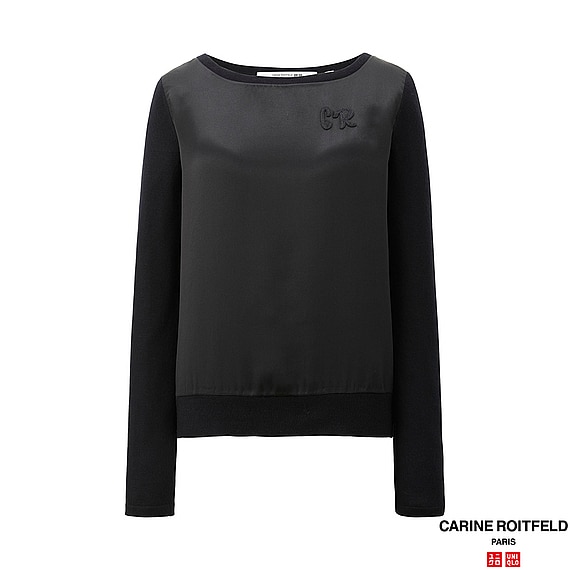 【新品・L】ユニクロ×カリーヌ メリノブレンドコンビネーションセーター(長袖) ブラック 黒 シルク