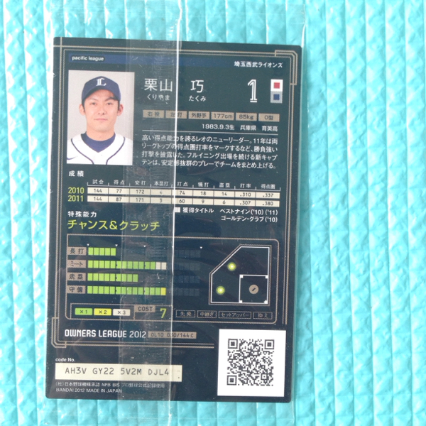 プロ野球カード オーナーズリーグ 2012 未開封 西武 栗山巧