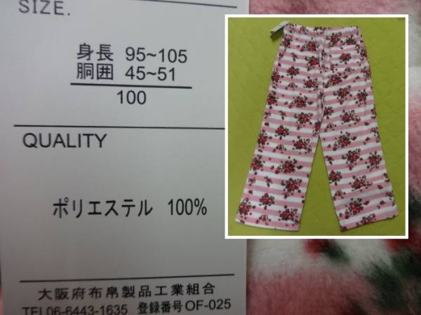 新品 ノンブランド フリースパンツ KIDS【 100 センチ】ピンク 花柄 ルームウェア 3-1