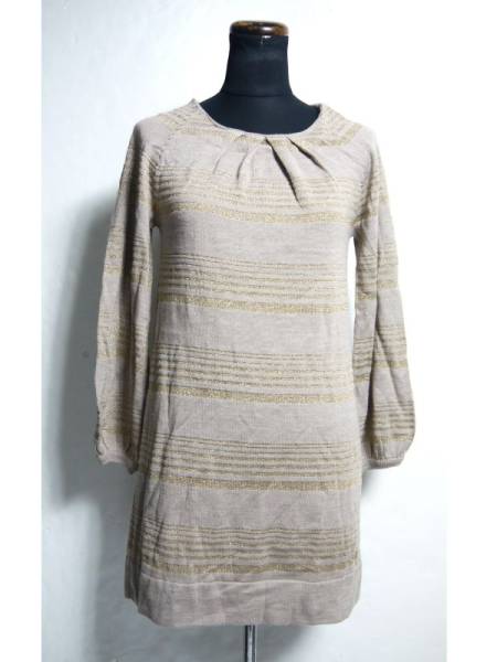 USED品正規品(ビームス)のLAPIS LUCE PER BEAMS(中国製)の表地;毛50%・アクリル50%、スリット糸使用;レーヨン90%・ポリエステル10%の裏地が付いてない、ワンピースです。