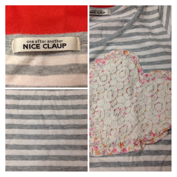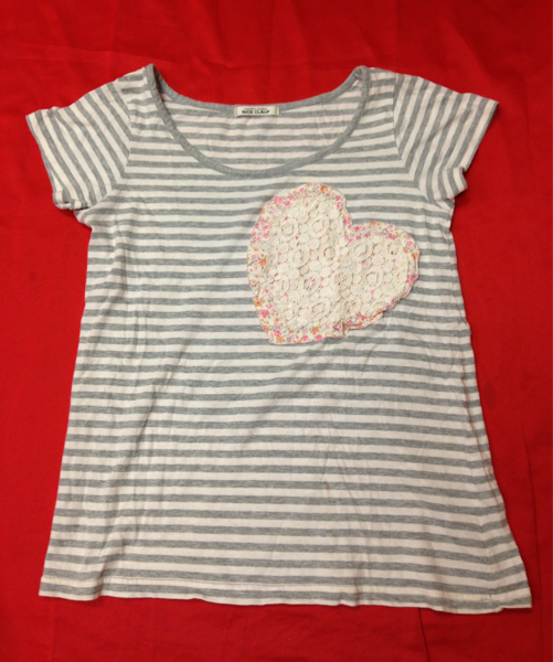 NICE CLAUP ハート型レース使い ボーダーTシャツ ボートネック