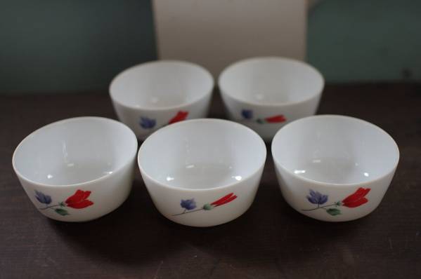 赤い花の意匠が映える上品なノリタケの茶碗5点です。
