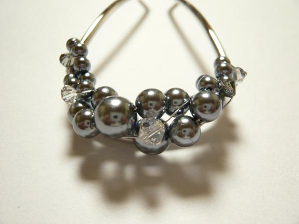 | 様々なサイズのパールとダイヤカットクリスタルのパーツで飾られた豪華な夜会巻きUコームです。 | ||