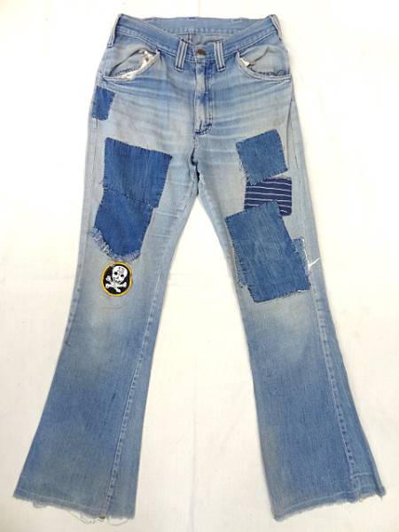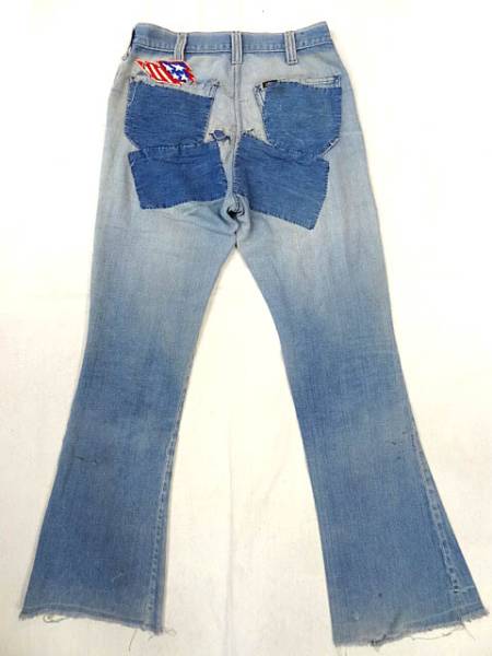 ビンテージ リー LEE 70S ヒッピー カスタム インディゴ デニム フレア ベルボトム パンツ ワッペン パッチ リペア 雰囲気 希少 レア 珍品