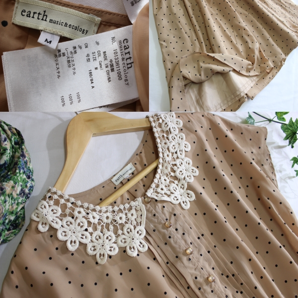 ◆ アースミュージック&エコロジー◆レース襟ドットワンピース♪M/a209 | |||