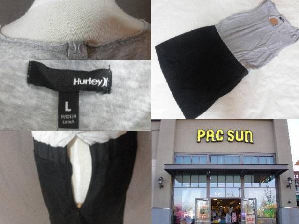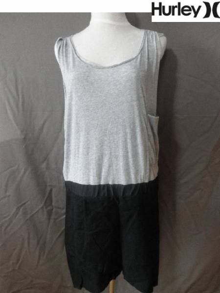 USA購入海辺最適ゆるカワ系ハーレーHurley ワンピースUS L 灰x黒